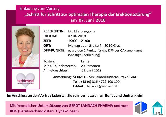 Für weitere Fragen stehen wir sehr gerne unter 0316/722 100 100 oder therapie@sexmed.at zur Verfügung.